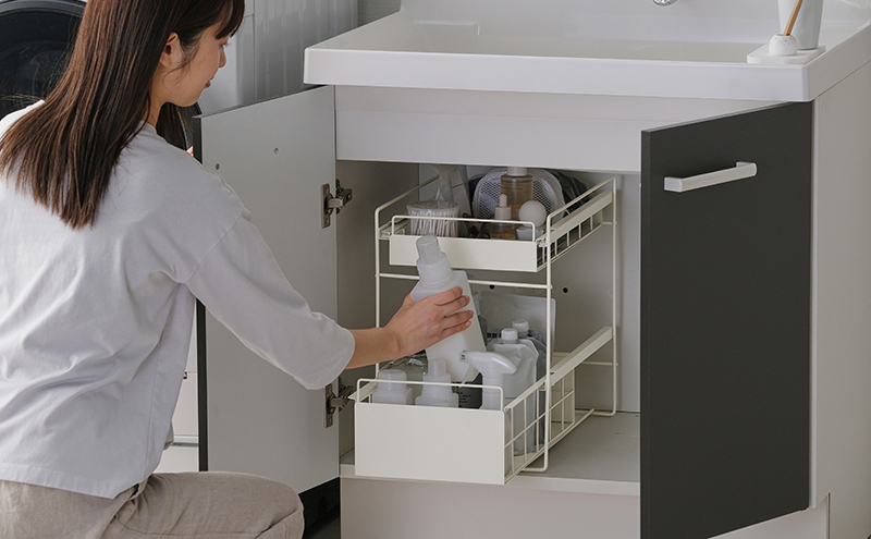 キッチンのシンク下スペースを有効活用する2段式ラック[ベーシックタイプ:幅約26.7cm]です。