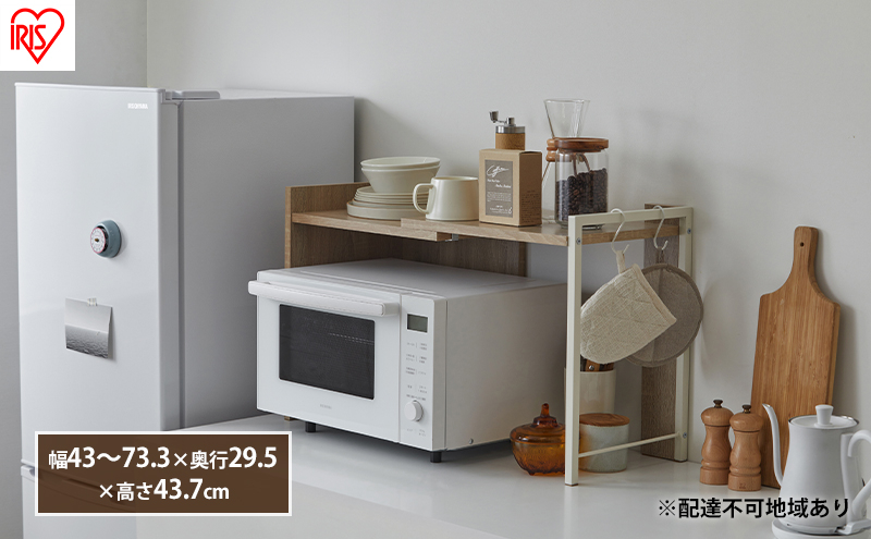 レンジラック レンジ台 レンジ上ラック 伸縮 RRS-733 ライトナチュラル/ホワイト アイリスオーヤマ キッチンラック 棚 シェルフ 卓上 スパイスラック キッチン収納 省スペース 北欧 おしゃれ