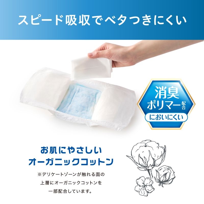 「薄型」×「スピード吸収」でベタつきにくく、快適に過ごせます。