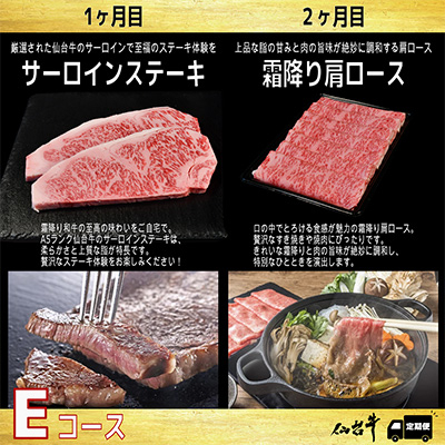 <毎月定期便>A5等級仙台牛<最高等級黒毛和牛Eコース>ステーキ・すき焼き・切り落とし・モモ 全4回【4002742】