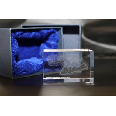 スポーツランドSUGO 3Dクリスタルは、50周年を記念して特別にデザインされたアイテムです。クリスタルの中には、スポーツランドSUGOのインターナショナルレーシングコース全体が繊細に彫刻されています。立体的な造形により、地形やコースレイアウトをリアルに感じられる仕上がりとなっています。