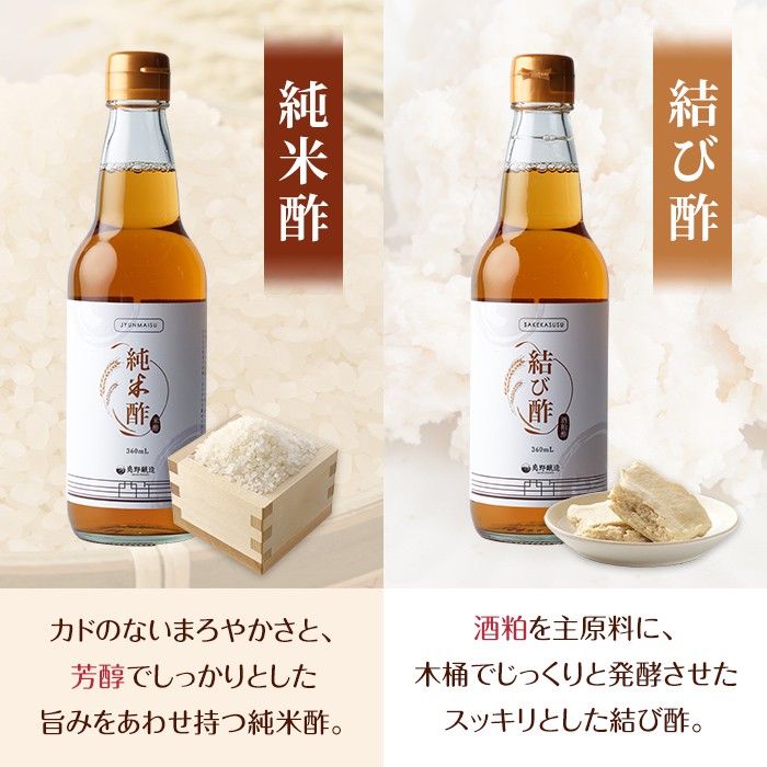 | 容量 | ・玄米酢:360ml×1本 ・純米酢:360ml×1本 ・結び酢:360ml×1本 |