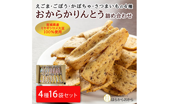 おからかりんとう 130g×16袋セット(えごま・ごぼう・かぼちゃ・さつまいも)【18102】