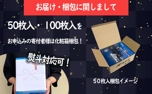 2週間以内に発送予定 【熨斗について】 熨斗をご希望の場合は、ご希望の熨斗を下記から選び、備考欄へご記入ください。 1.熨斗(無地) 2.熨斗(御祝) 3.熨斗(御歳暮) ※熨斗の有無で有をお選びになり備考欄に未記入の場合は 《1.熨斗(無地)》でお届けいたしますので予めご了承ください。 ※20枚入り・40枚入りは熨斗対応不可となります。 |