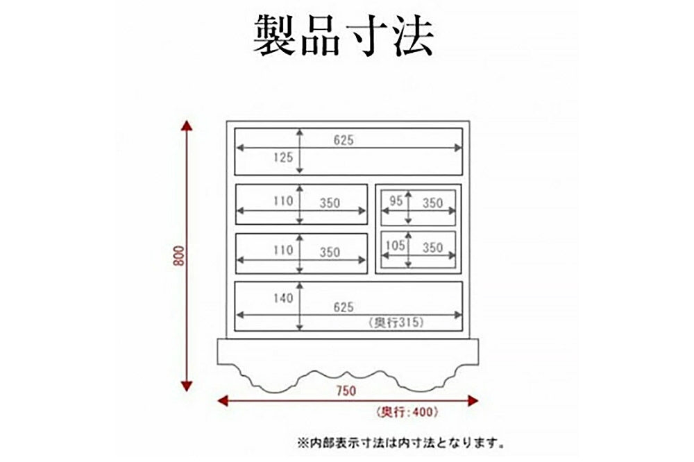 | 容量 | ■名称:仙台箪笥 ■内容量:1点 ■産地名:宮城県 利府町 ■材質:表面材:欅突板 漆塗り:本漆拭き漆塗り 金具:特製鍛造金具 黒色(蟹牡丹柄) ■サイズ:巾75×奥40×高80cm ■注意事項: ※画像に写っている仙台箪笥以外の小物や備品はついておりません。 ※お申込書返送期限:発行日より10日以内(当日消印有効) ※お申込書返送期限内にご返信いただけない場合、申込書に記載の納期に間に合わない可能性がございます。ご返信いただけない場合、返礼品のお届けが出来ません。その場合、返金等の対応は一切出来兼ねますのでご注意下さい。 ※沖縄県・離島・配達困難地域にはお届けが出来ません。 ※混雑状況によりさらに納期をいただく場合がございます。 ※設置場所は階段上げの場合2階まで可能です。 ※外からの吊り上げ等、特別な作業が伴う搬入は対応しておりません。 ※必ず事前に搬入経路のご確認をお願いします。 ※掲載情報は最新の内容を反映するよう努めておりますが、製品仕様は改良や製造状況等により予告なく変更となる場合がございます。金具・サイズ等の細部につきましては、実際のお品と異なる場合がございますので、あらかじめご了承ください。 ※詳細は、お申し込み前に欅産業公式ホームページにて最新情報をご確認ください。 ※ふるさと納税(寄附申込み)のキャンセル、返礼品の変更・返品はお受けできません。あらかじめご了承ください。 ■提供元:欅産業 ■配送不可地域:沖縄県,離島 |