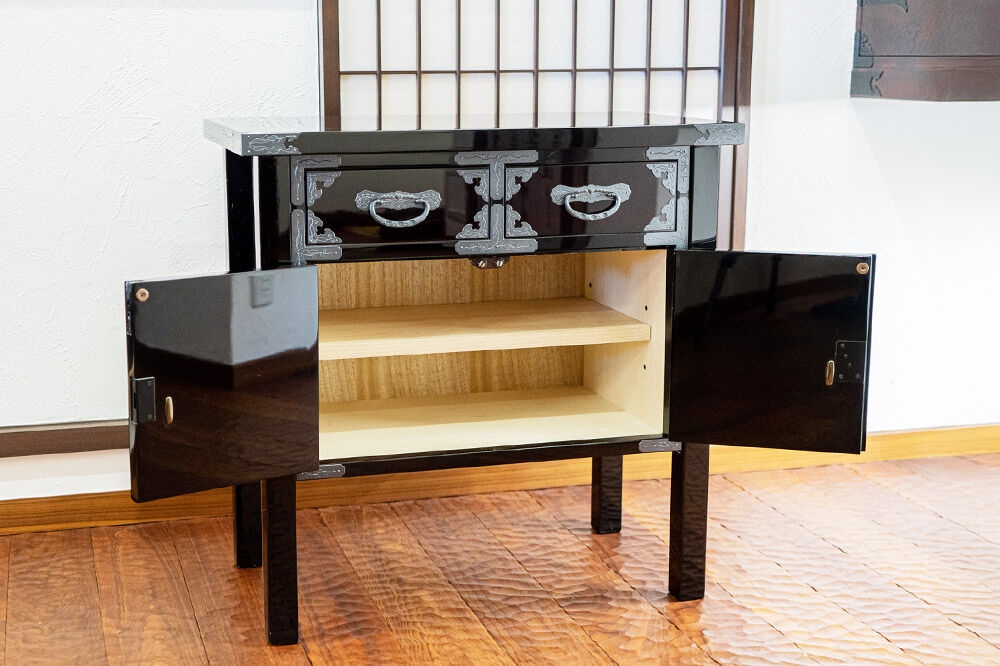 インテリア タンス 収納 家具 和 モダン 高級 和箪笥 小箪笥 伝統 工芸品 仏壇 仏具 神具 飾り棚 欅 漆塗 彫金 金具 装飾 仙台箪笥 船箪笥 舟箪笥 宮城 利府 欅産業 (260323154627)