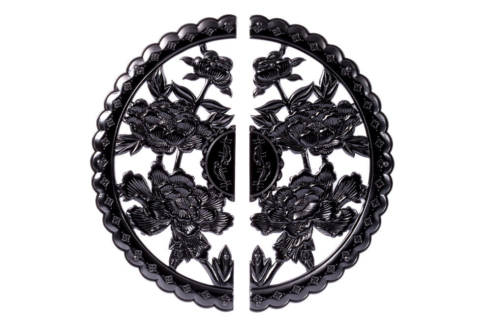 【彫金手打金具】仙台箪笥 舟箪笥 ≪唐獅子牡丹≫ 黒呂漆塗り (申…