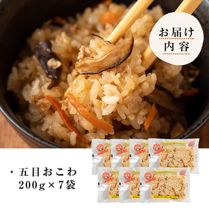 かまどと薪で炊き上げた具材たっぷりの五目おこわをお届け! 五目おこわ 200g×7食 かまど炊き おこわ パックご飯 小分け 冷凍 もち米 電子レンジ 【笠原餅店】ta313