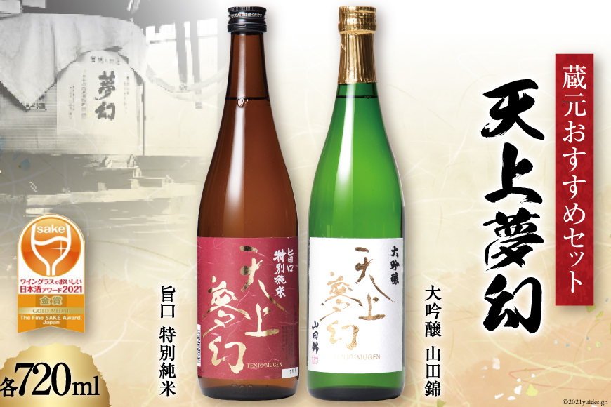 加美町にて創業明治39年より酒造業を営む中勇酒造店の人気ブランド「天上夢幻(てんじょうむげん)」の蔵元おすすめ2本セットです。