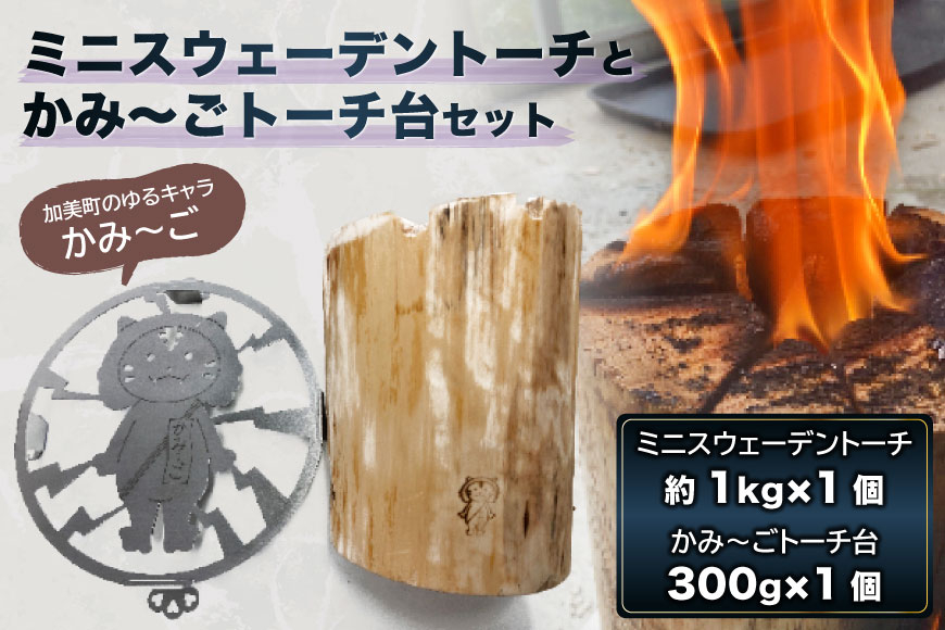 | 容量 | ■お礼品の内容について ・ミニスウェーデントーチ[約1kg×1個] 原産地:宮城県加美町/製造地:宮城県加美町/加工地:加美町宮城県 ・かみ~ごトーチ台[300g×1個] 製造地:宮城県加美町/加工地:宮城県加美町 ■原材料・成分 加美町間伐材(ミニスウェーデントーチ)、ステンレス(トーチ台) ※木の種類は入荷状況により変わります |