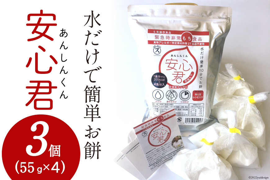 備えて安心!長期保存もできる ! 水だけで簡単 即席餅 餅 緊急時 非常食品 お餅 「安心君」(55g×4)×3個 | もち簡単 災害用 非常食 備蓄食 長期保存 [菅原商店 宮城県 加美町] |sg-ansn-3s |1031KH