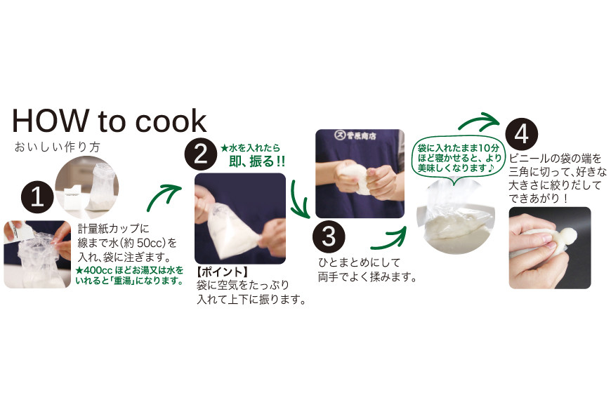 一度加熱しているので、水を加えて揉むだけで簡単にお餅ができます。