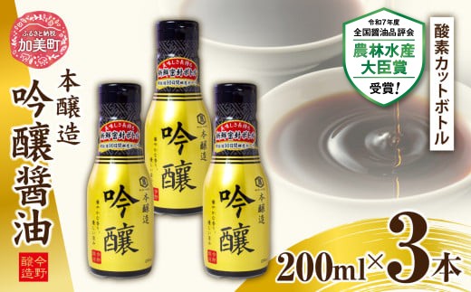 醤油 本醸造吟醸 酸素カットボトル 200ml×3本 [今野醸造 宮城県…