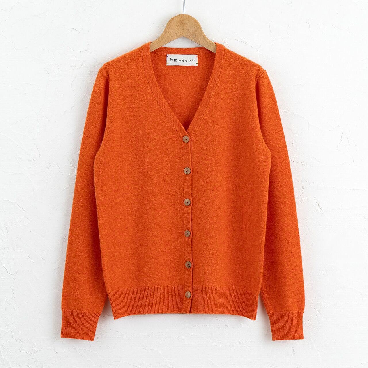 職人が手横編み機と手動リンキング縫製機を使用して編み上げるニット Vネックカーディガン 度詰 (キャロット )男性用サイズ:LL(46)≪白田のカシミヤ≫