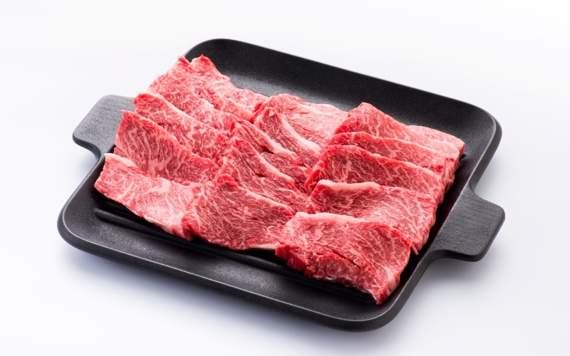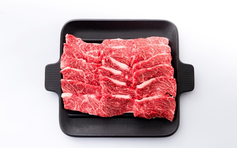 カルビのような芸術的な霜降りではありませんが、赤身を主体とした肉肉しい焼肉用となります。また、適度な食感もあり噛むほどに味わいが増していきます。やわらかすぎず、かたすぎず和牛本来の美味しさを味わえる一品です。カタにあたるかモモにあたるかまたはバラにあたるかは到着してからのお楽しみです。