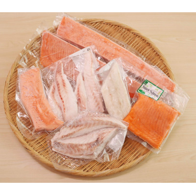 | 容量 | ■お礼品の内容について ・お刺身用季節の地魚[4種×各1袋] 原産地:宮城県牡鹿郡女川町 消費期限:発送日から180日 ・養殖銀鮭「銀王」刺身用サク[2本(半身1枚分)] 原産地:宮城県牡鹿郡女川町 消費期限:製造日から365日 ・養殖銀鮭「スーパーサーモン」ロインお刺身用[100g×1袋] 原産地:宮城県牡鹿郡女川町 消費期限:製造日から300日 ■原材料・成分 ◇お刺身用柵詰合せお刺身用季節の地魚×4種 女川産養殖銀鮭「銀王」 女川産養殖銀鮭「スーパーサーモン」 |