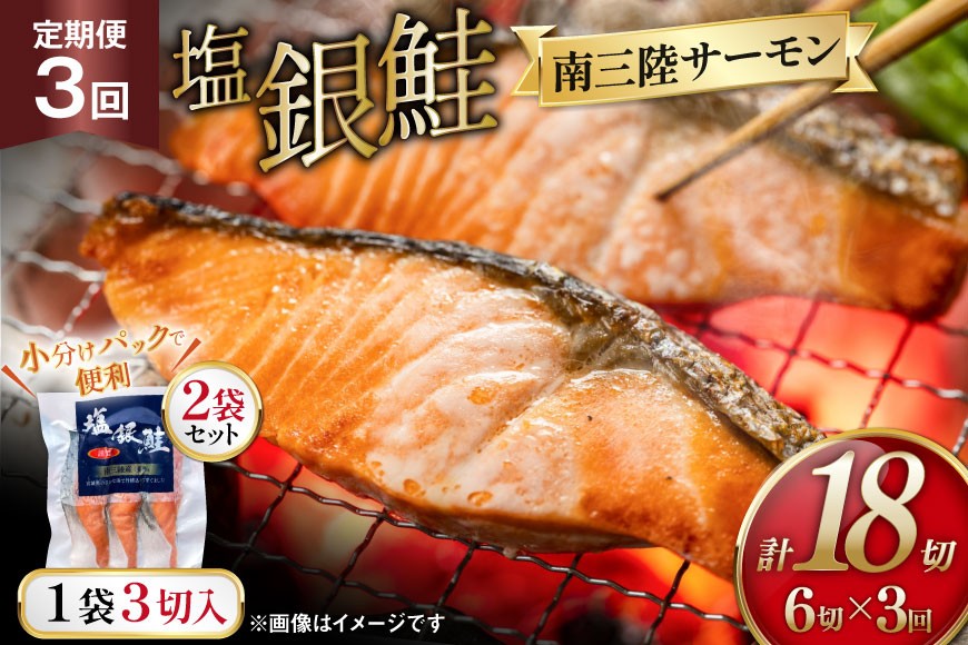 口の中でじゅわっと広がる旨味がたまらない♪ 3回 定期便 塩銀鮭パック 3切×2袋×3回 総計6袋 [たみこの海パック 宮城県 南三陸町 m304amh560083] 鮭 切り身 サーモン 銀鮭 塩銀鮭 シャケ 切身 さけ サケ 国産 小分け 個包装 冷凍