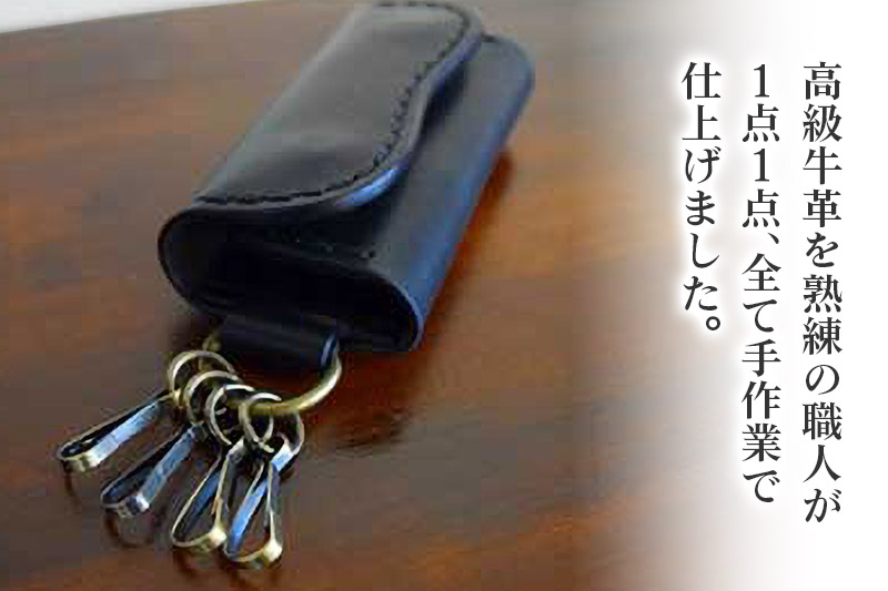 チョイスPayポイントと交換できる品 高級牛革 手縫い キーケース (ブラック) 革細工工房ROVER(ローバー) 牛革 革 レザー