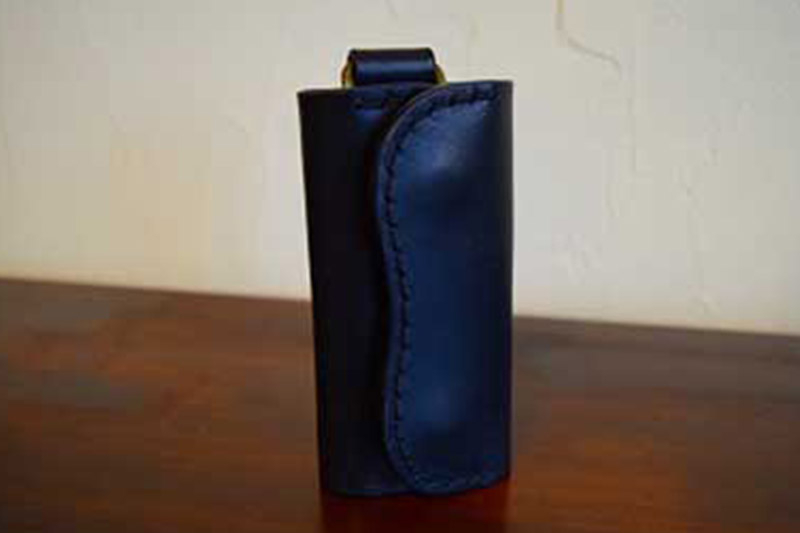 時間をかけて鞣された高級な牛革を使い、裁断、染色、磨き、縫い全て手作業で仕上げています。手作業は時間がかかりますが一つ一つ違う革の特徴に臨機応変に対応し革の良さを最大限に引き出すことができます。カギを付ける金具は特別な金具を使い、長く使っても金具が外れてしまわぬようオリジナルな金具を取り付けています。(スマートキーも収納しやすい大きさに設計しております。)