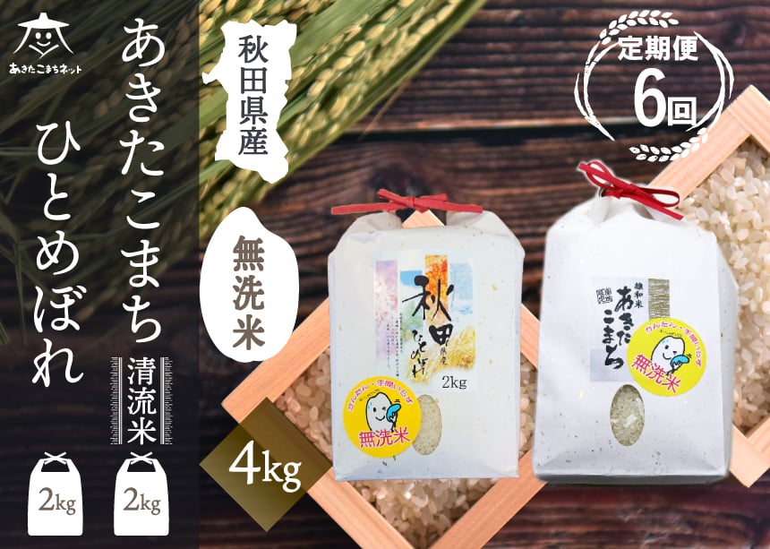 チョイスPayポイントと交換できる品 《定期便6ヶ月》あきたこまち・ひとめぼれ 2種食べ比べセット 計4kg (2kg×各1袋) 【無洗米】秋田県産