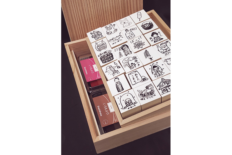 秋田県内の祭りや食べ物はもちろん、懐かしい風景や工芸品など、秋田を感じる手描きイラストがスタンプになりました。100種類以上ある中からチョイスしたスタンプ24種が、香り豊かな秋田杉の箱に大集合。和の色が優しさを感じるスタンプパッド4色をセット。お手紙やハガキに捺して…ビジネスシーンでは、名刺やチラシ、お知らせなどに捺して印象アップ!