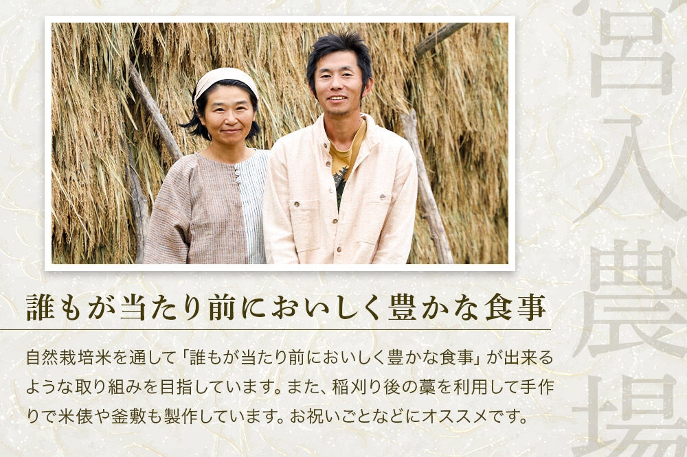 また、目でも自然を味わってもらいたく、稲刈り後の藁を利用して手作りで米俵や釜敷も製作しています。お祝いごとなどにオススメです。