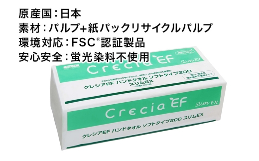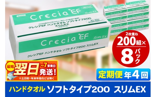 最短翌日発送《3ヶ月ごとに4回お届け》定期便 ハンドタオル クレシアEF ソフトタイプ200 スリムEX 2枚重ね 200組(400枚)×8パック 秋田市オリジナル