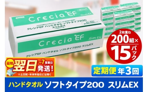最短翌日発送《4ヶ月ごとに3回お届け》定期便 ハンドタオル クレシアEF ソフトタイプ200 スリムEX 2枚重ね 200組(400枚)×15パック 秋田市オリジナル