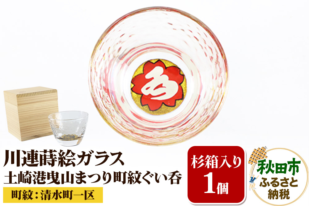 チョイスPayポイントと交換できる品 川連蒔絵ガラス 土崎港曳山まつり町紋ぐい呑(杉箱入り)【清水町一区】