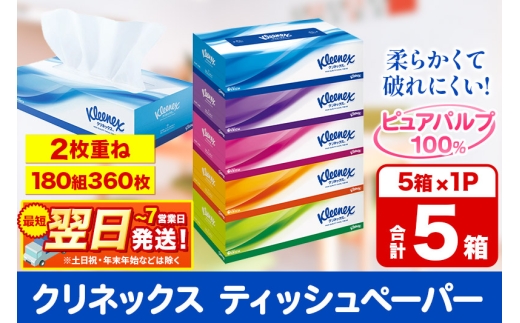 クリネックス ティッシュペーパー 360枚(180組) 5箱×1パック 秋田市オリジナル 最短翌日発送