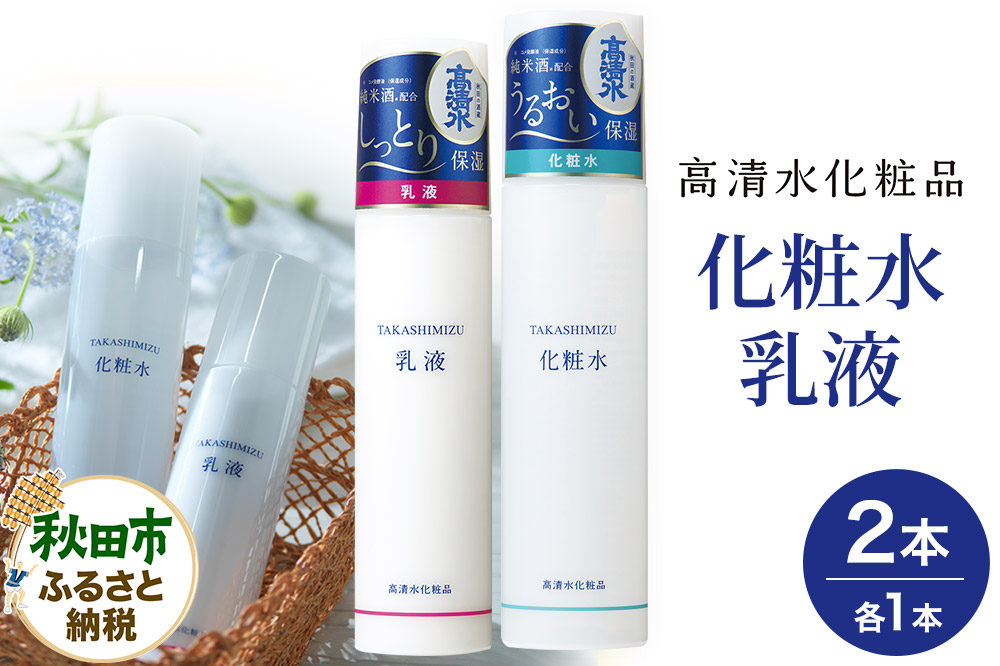 美人の故郷秋田は清酒「高清水」を配合したスキンケアシリーズの化粧水と乳液のセットです。