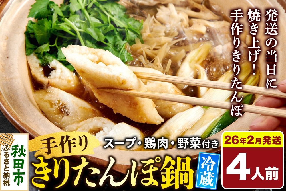 チョイスPayポイントと交換できる品 発送当日に手作り!届いたその日に本格的なきりたんぽ鍋を! 《2026年2月発送》 手作りきりたんぽ鍋セット 4人前 秋田名物 きりたんぽ 野菜付き 比内地鶏スープ 秋田 秋田市 手作り 冷蔵 自家栽培