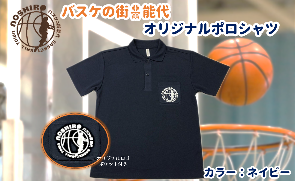 「バスケの街 能代」オリジナルポロシャツ ポケット付 ネイビー