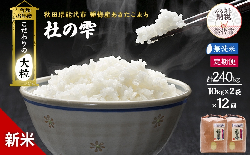 新米 先行予約 令和8年産[無洗米]【定期便12ヶ月】秋田県産 あきたこまち 20kg(10kg×2)×12回 計240kg 「杜の雫」こだわりの大粒 種梅産【 お米 おこめ たねうめ 精米 ご飯 ごはん ブランド米 大粒 おにぎり 産地直送 能代 】