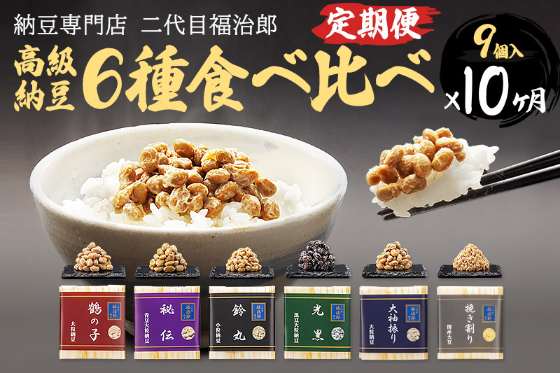 《定期便10ヶ月》二代目福治郎高級納豆6種食べ比べ 9個入り