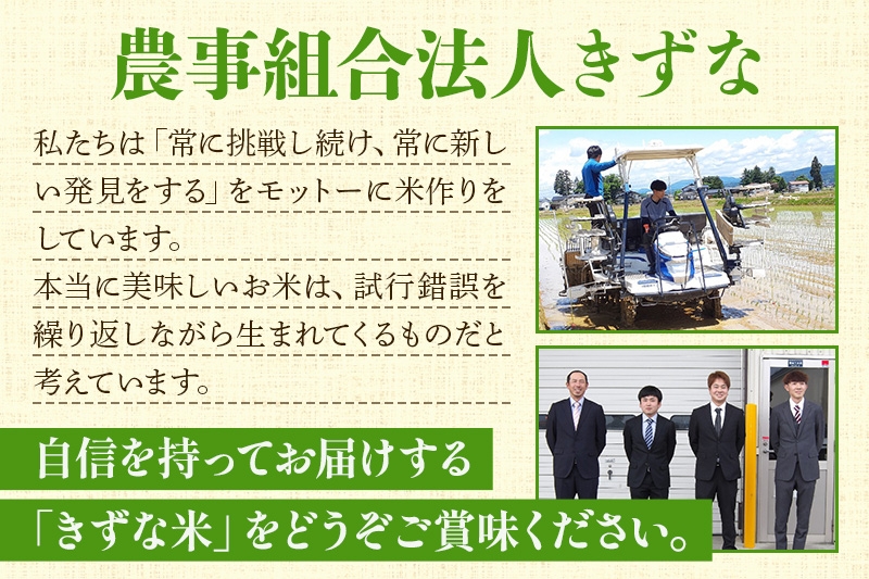 私たちは「常に挑戦し続け、常に新しい発見をする」をモットーに米作りをしています。本当に美味しいお米は、試行錯誤を繰り返しながら生まれてくるのではないでしょうか。自信を持ってお届けする、私たちの「きずな米」をどうぞご賞味ください。