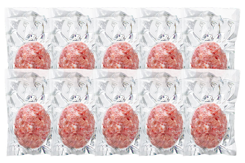 ★一般家庭で作るハンバーグのように、一個一個を手作業で成形して仕上げています。手作り感のある風味を楽しめます。弾力を感じる肉の歯触り、ジューシーな味わいは格別です。