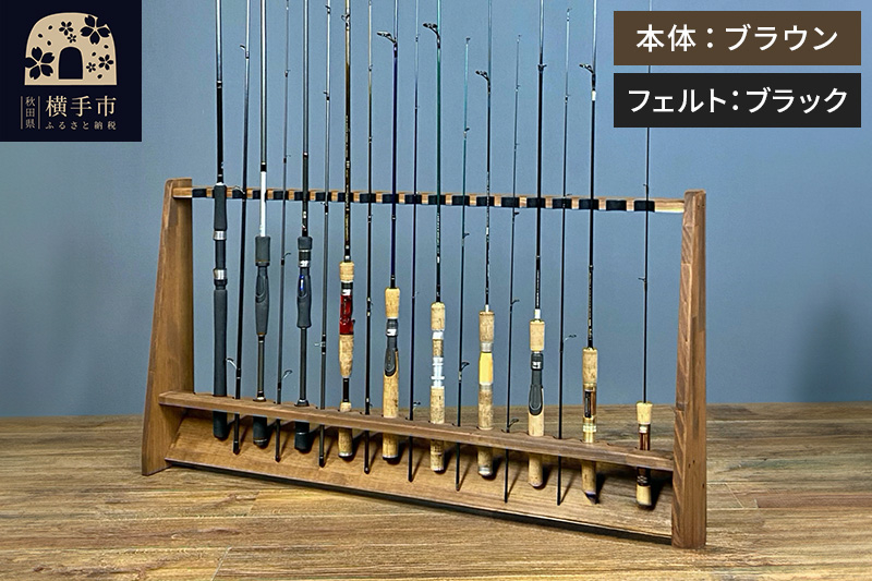 ロッドスタンド 片面20本用【本体:ブラウン】【フェルト:ブラック】