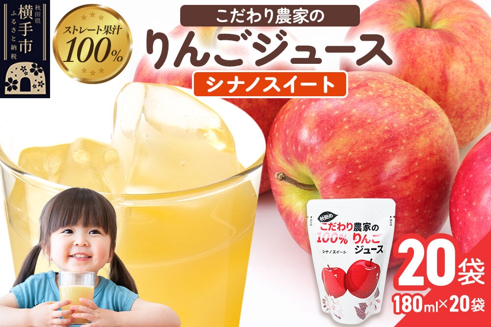 だいごの丘 りんごジュース(シナノスイート)20袋 [りんご リンゴ 林檎 ストレート 甘味料不使用 果汁100% シナノスイート ジュース 秋田県産]