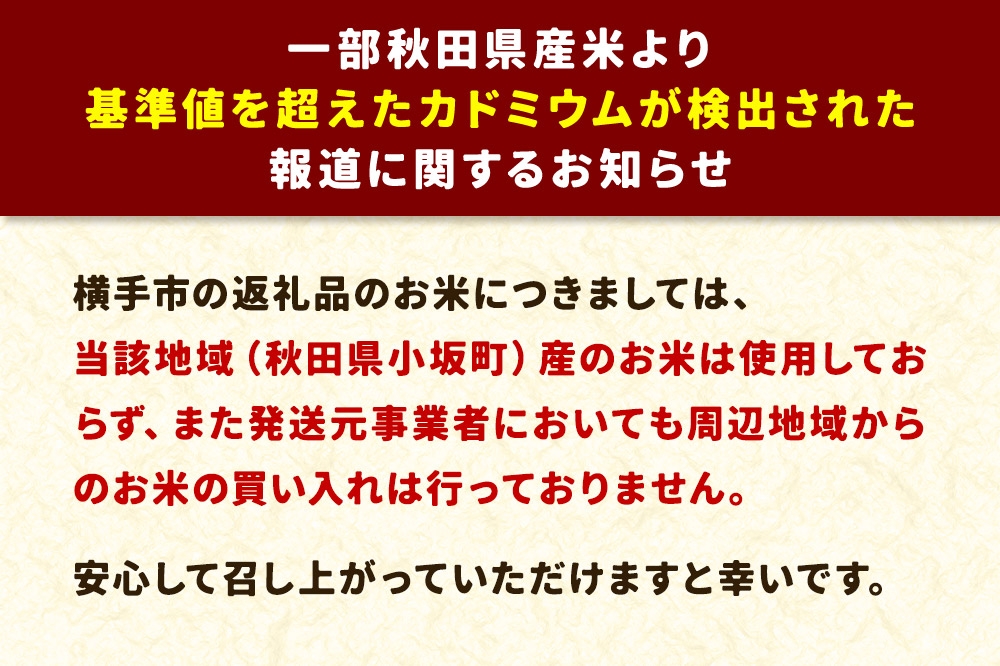 秋田県横手市産あきたこまちをご賞味ください。炊き立てはもちろん、冷めてもおいしいお米あきたこまち100%です。