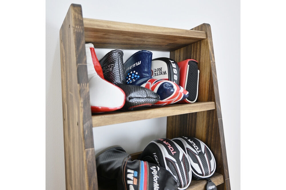 かさばるヘッドカバーや周辺アイテムを魅せる収納としてディスプレイできます。専用のラックがあると試打する時やメンテナス時にヘッドカバーの置き場所に困りません。また、ボールやティー、マーカー、計測器など様々なアイテムを収納することができます。