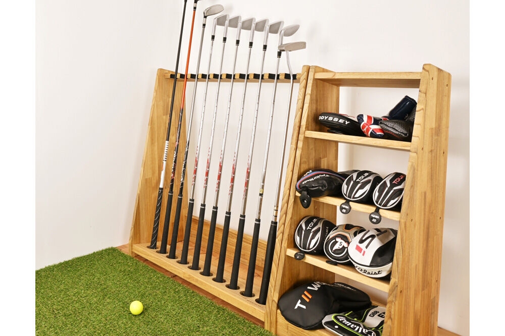 様々なインテリアに合うウッドデザインでシュミレーションゴルフやゴルフバーなどの店舗様やスポーツ店様にも使い勝手良くご使用いただけます。また、個人様の使用でもリビングやガレージ、練習部屋等でご使用いただけるデザインです。クラブのメンテナンス時にもおススメです。