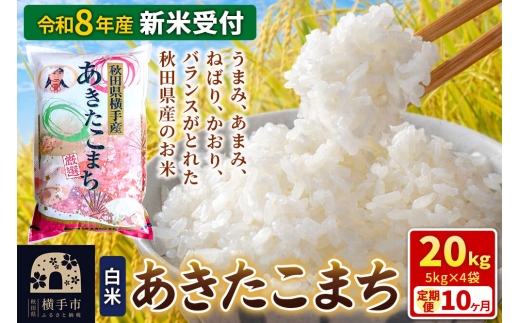 (株)中嶋貞助商店 《令和8年産 新米受付》【白米】《定期便10ヶ月》あきたこまち 20kg(5kg×4袋) 秋田県 横手市 [新米 先行予約 秋田県産 あきたこまち 秋田こまち 米 お米 こめ]
