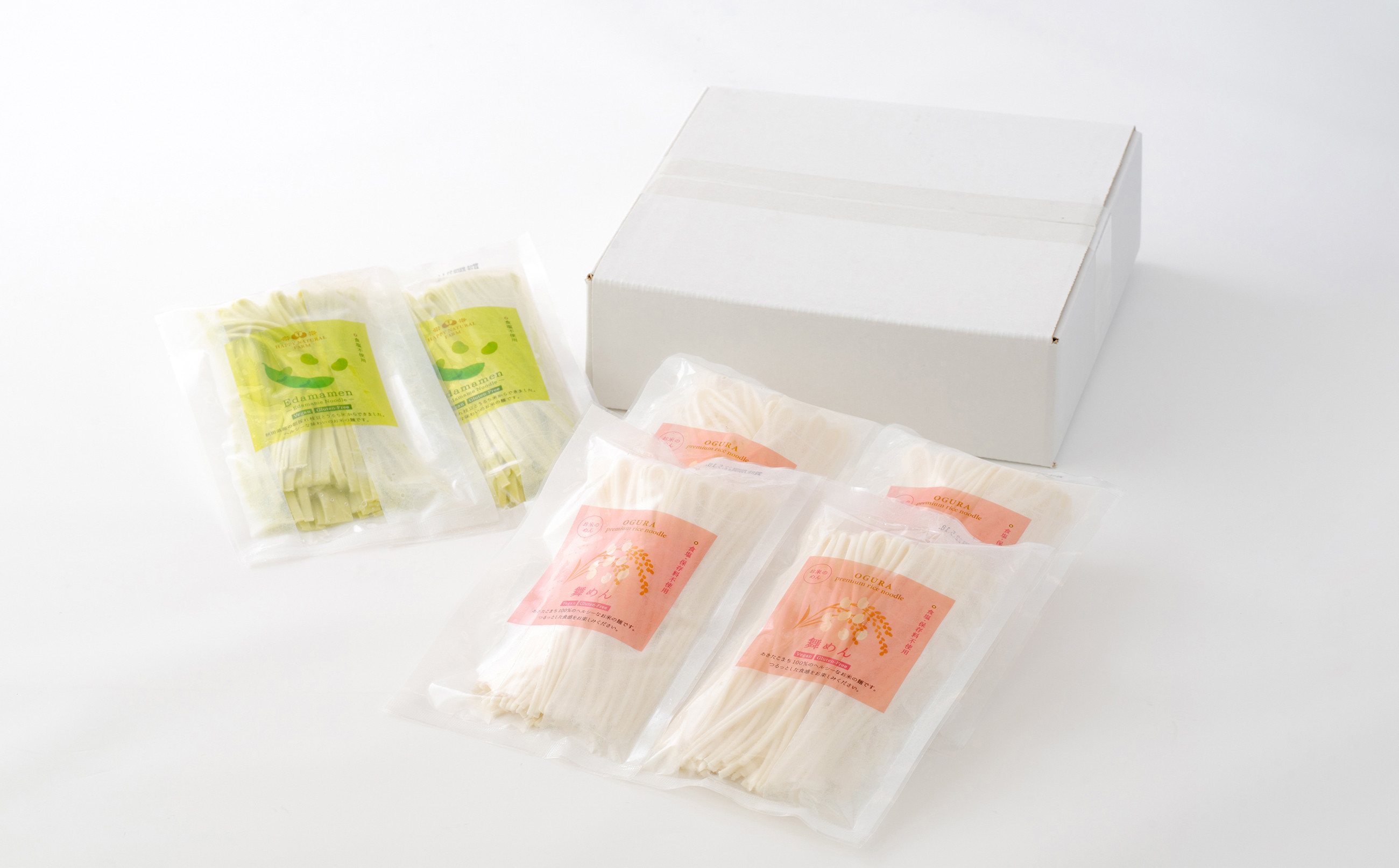 合成保存料・食塩不使用、あきたこまち100%の半生米粉冷凍麺 60P5501 舞めん&えだまめんセット / 東北 秋田 大館 米粉 麺 米粉麺 冷凍 冷凍麺 半生 あきたこまち OGURA 米 合成保存料不使用 食塩不使用