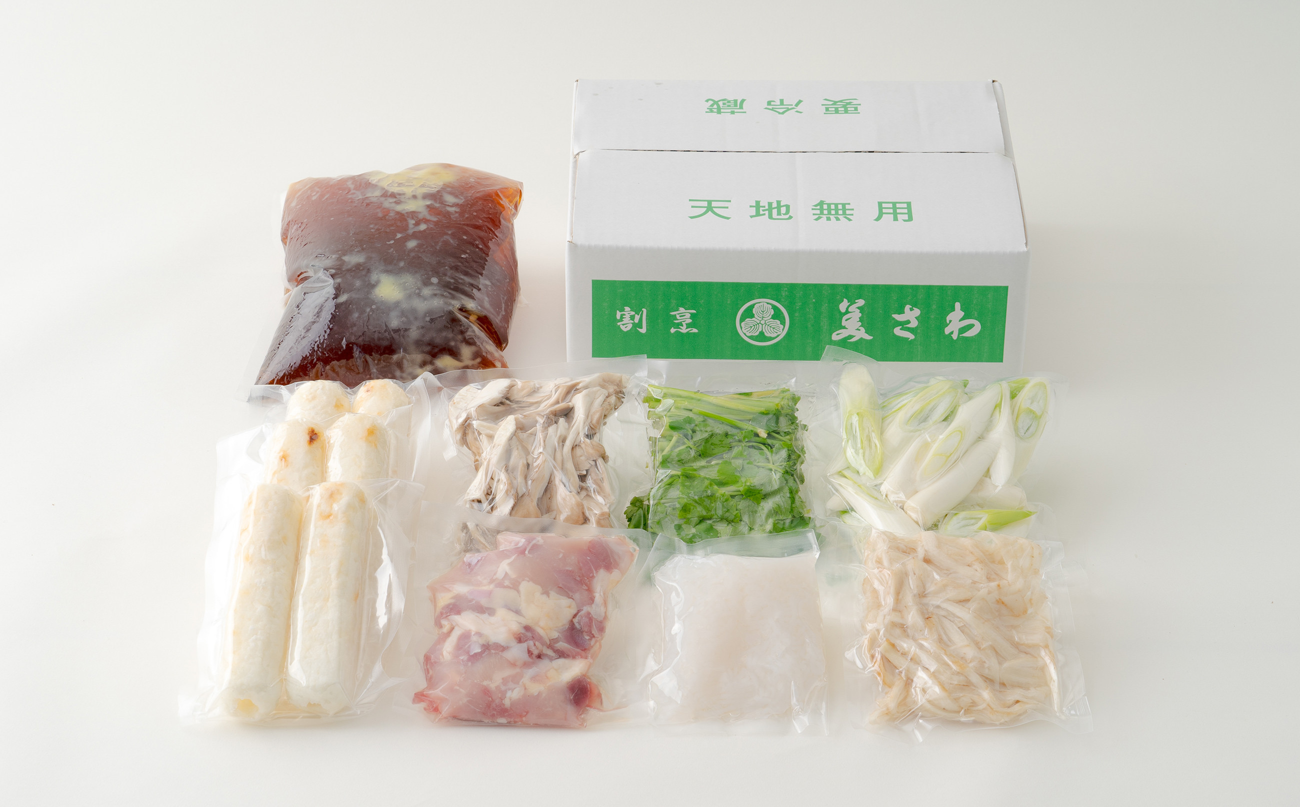 | 容量 | きりたんぽ6本、比内地鶏スープ(ストレート)1800ml、比内地鶏300g、ごぼう、まいたけ、ねぎ、せり、糸こんにゃく |