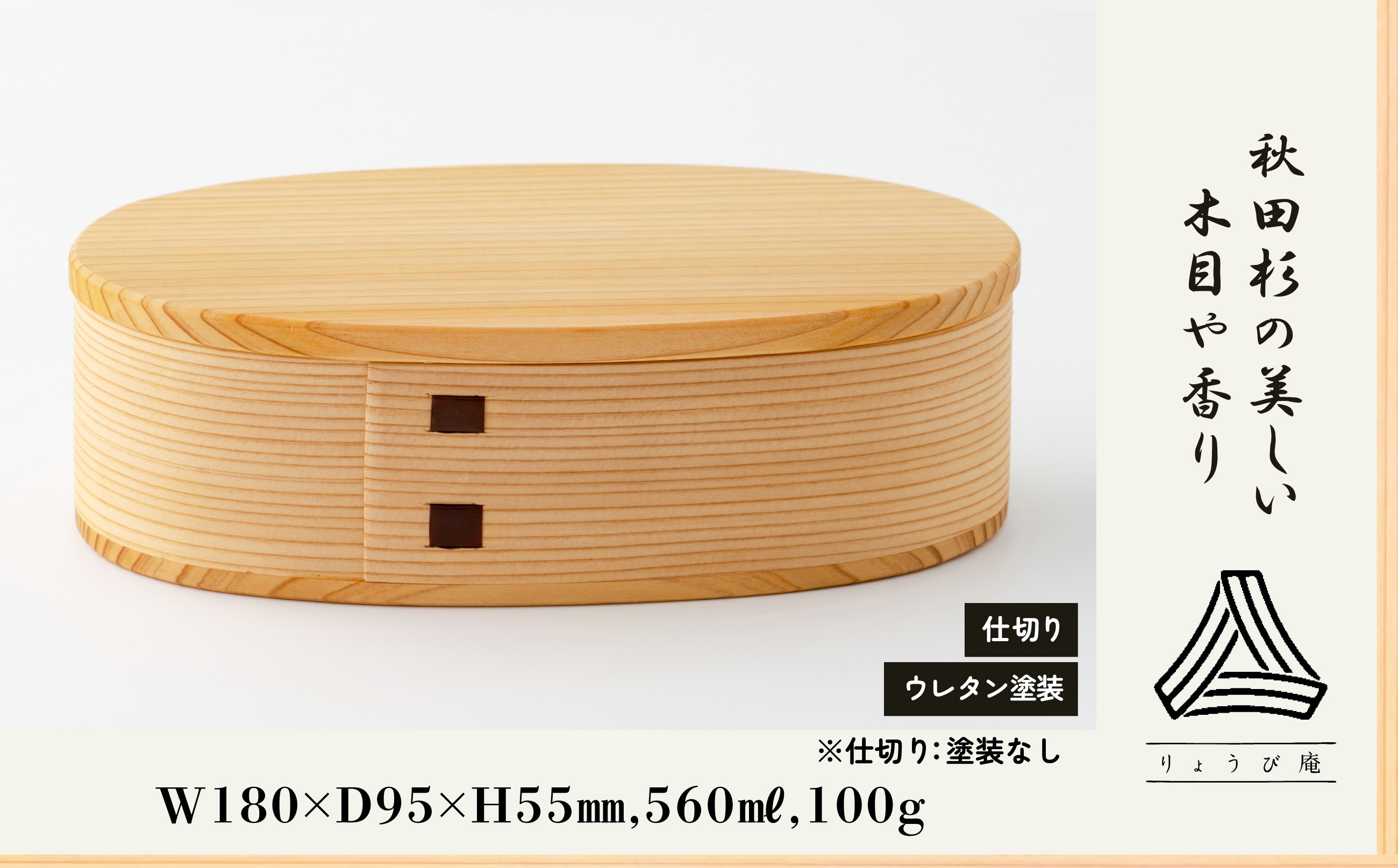 | 容量 | W180×D95×H55mm 560ml、100g 仕切り付 【注意】品質保持のため容器にウレタン塗装を施しております。 ※仕切りは無塗装です |