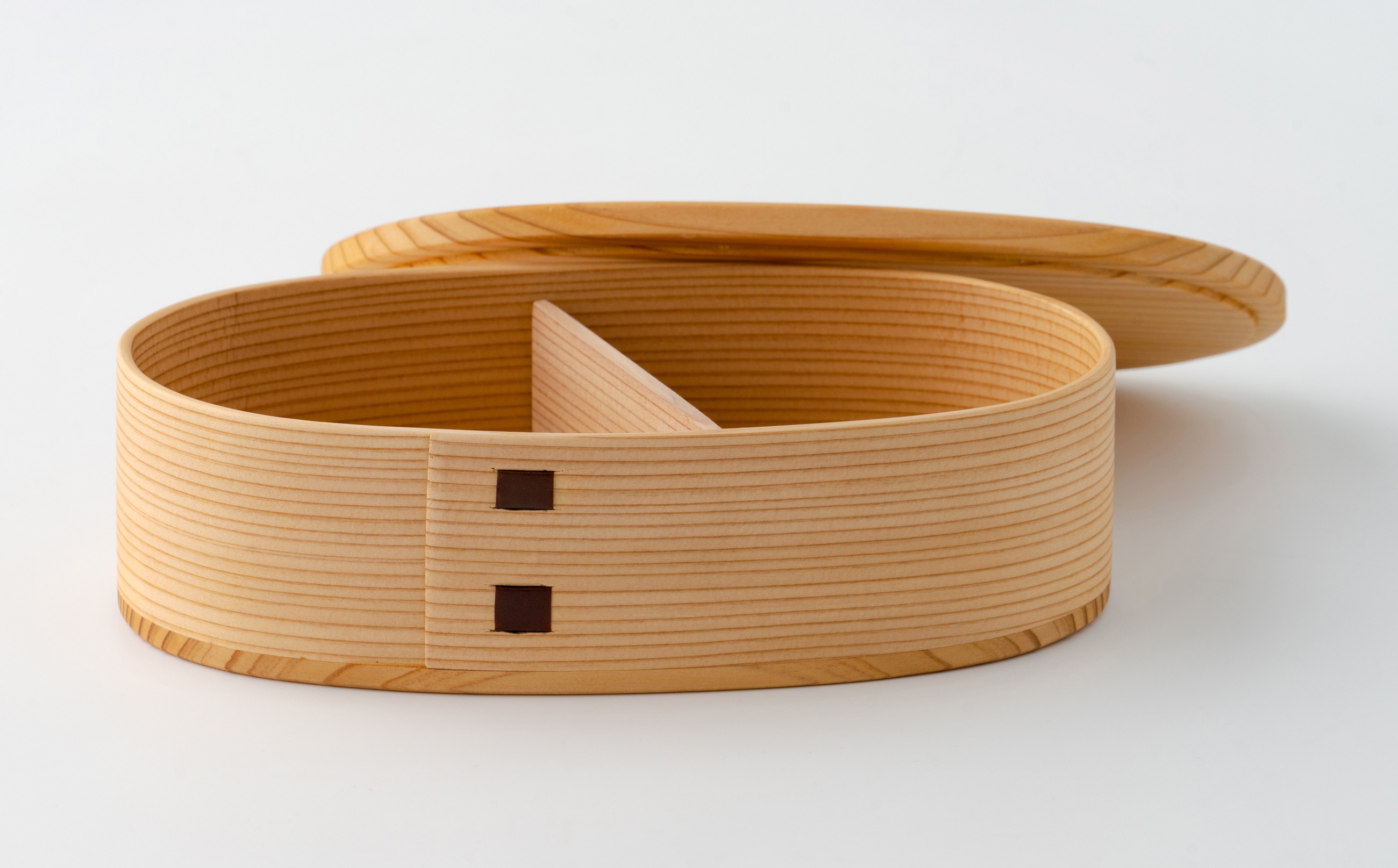 使い勝手の良い小判型の2段の曲げわっぱ弁当箱!