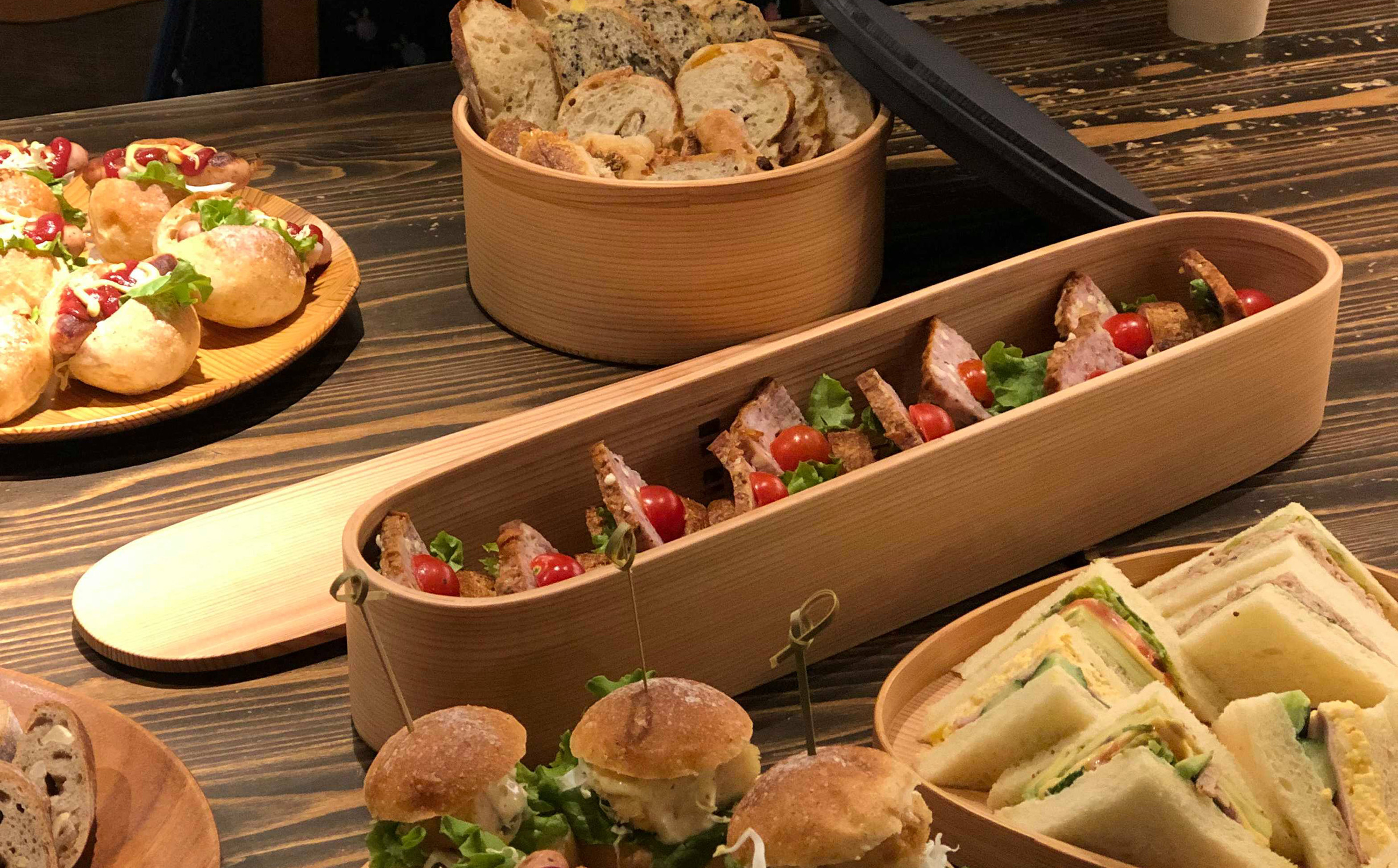 作業工程の9割が手作業の小さな工房であることを強みにして、従来の曲げわっぱの常識を覆す新しい形の器づくりに挑戦。さまざまな形のお弁当箱のほか、パンケースやワインクーラー、ケーキドームといったオシャレな器を次々と生み出しています。