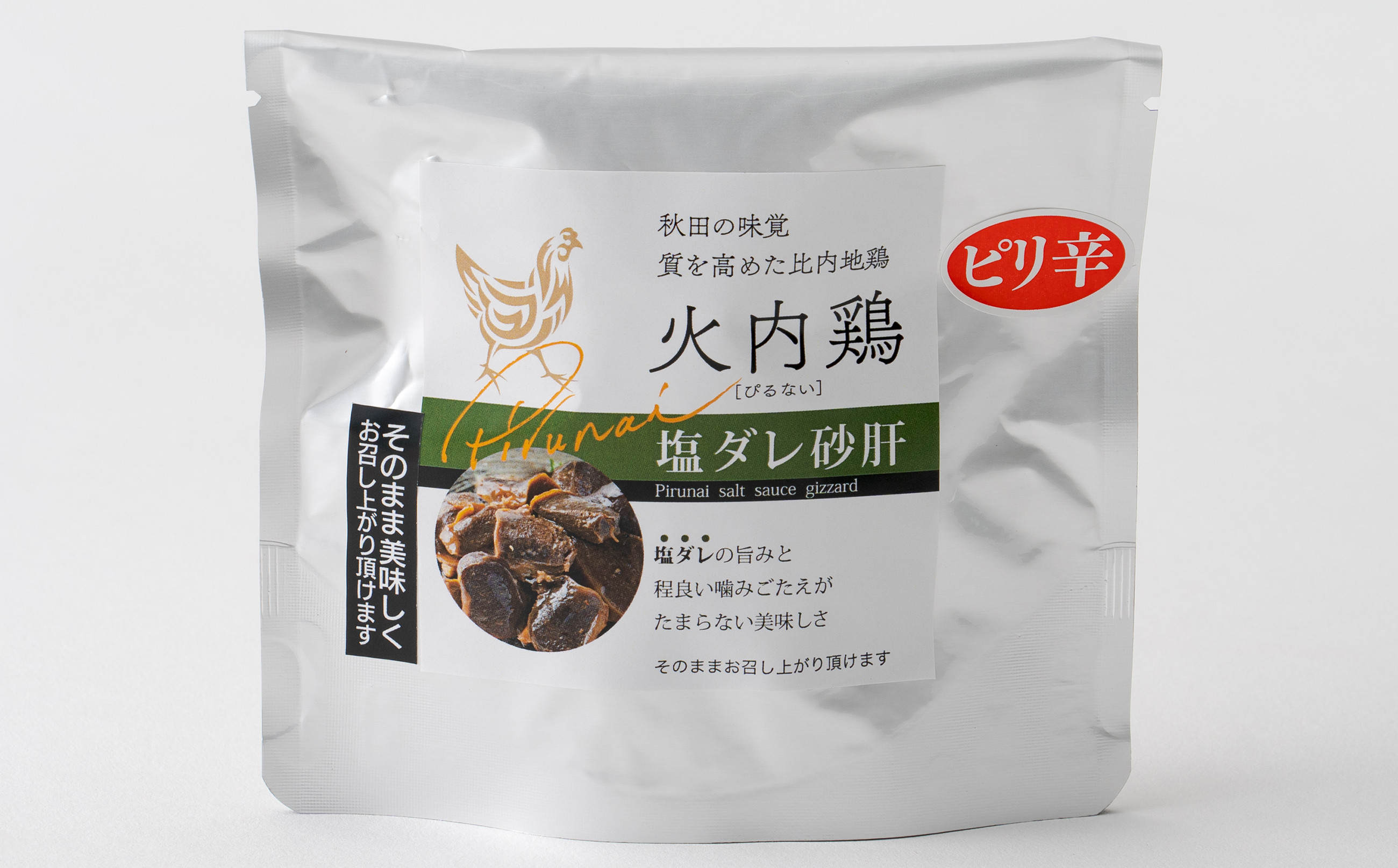 日本三大美味鶏に数えられる「比内地鶏」は通常、雌鶏だけを使用します。「雄鶏が処分されるのはもったいない」と雄鶏も食用として加工できるよう、5年間の研究と改良を重ね、独自の飼育方法で質を高めた独自ブランド鶏の比内地鶏が「火内鶏(ぴるないどり)」です。
