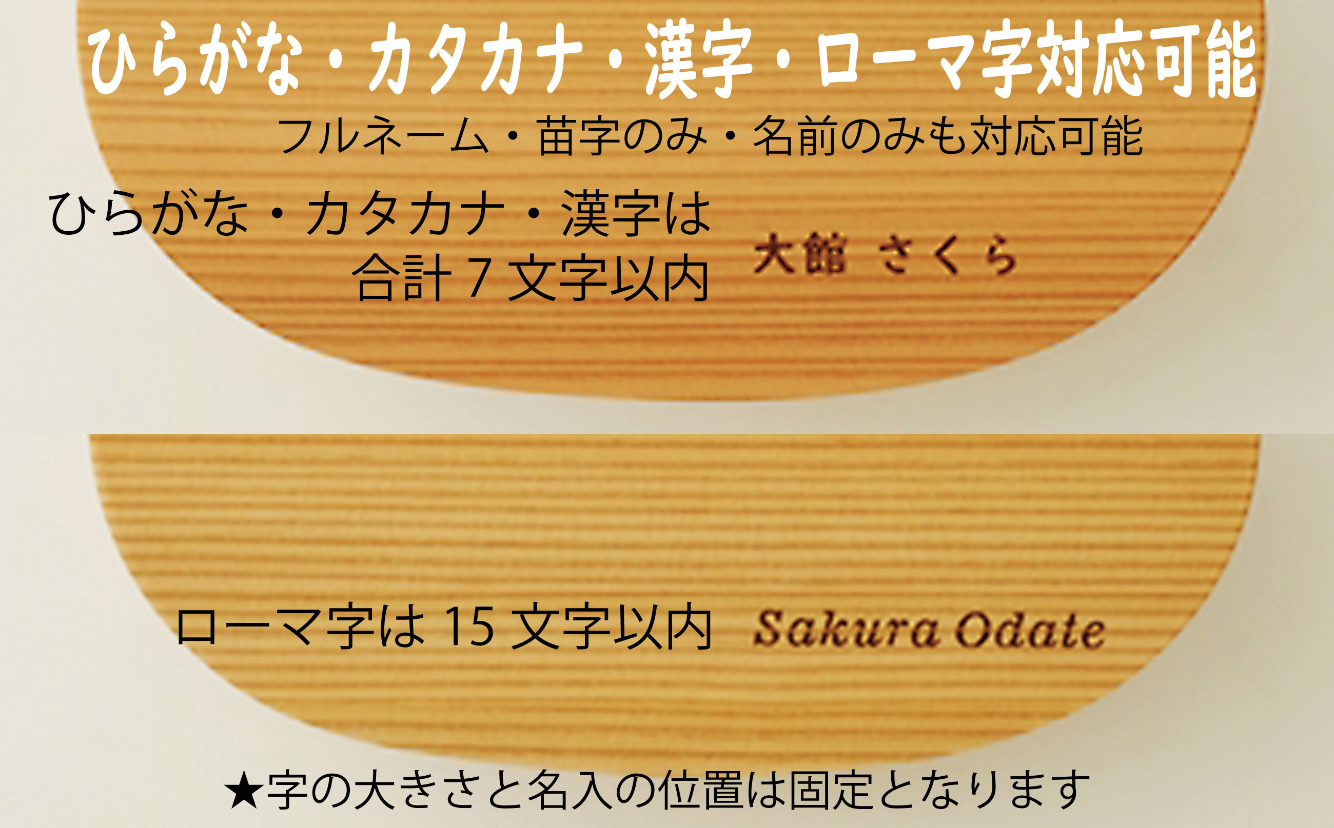 曲げわっぱ弁当箱に名前を入れることができます!